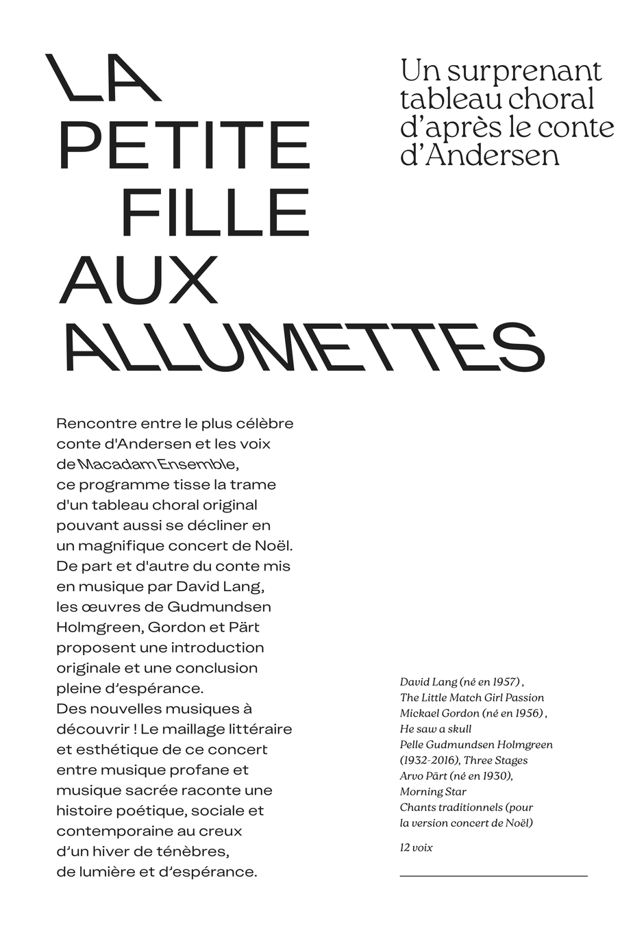 La Petite Fille aux Allumettes, (un concert de Noël)